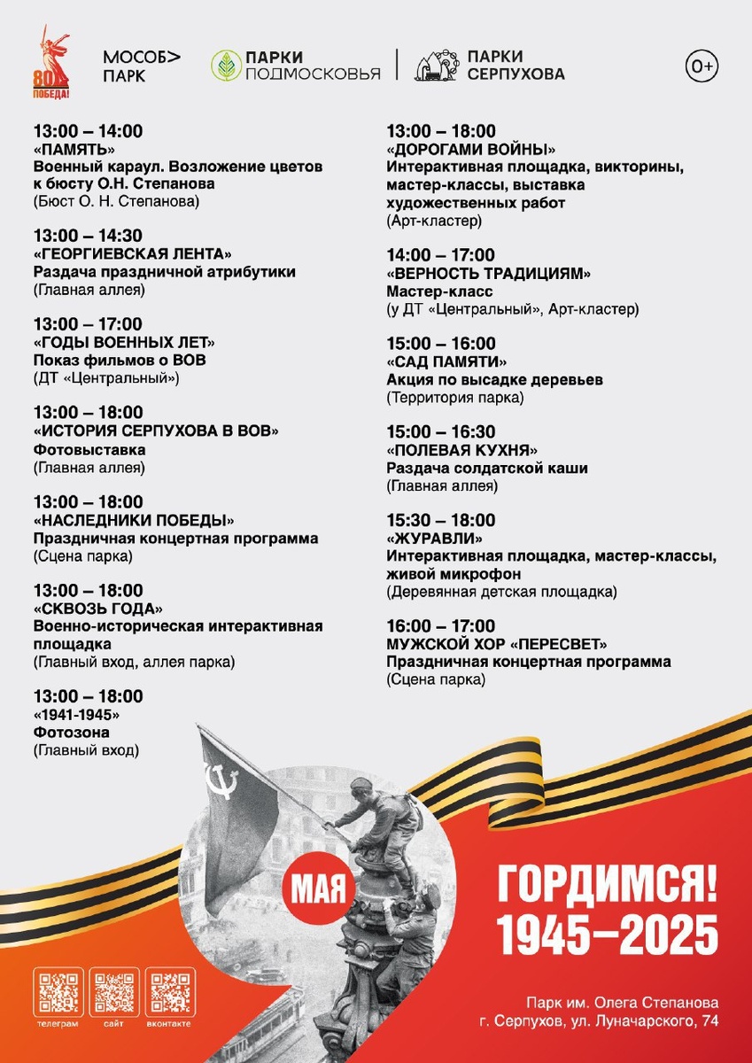 👉Основные мероприятия проведут в парках Серпухова 9 мая.