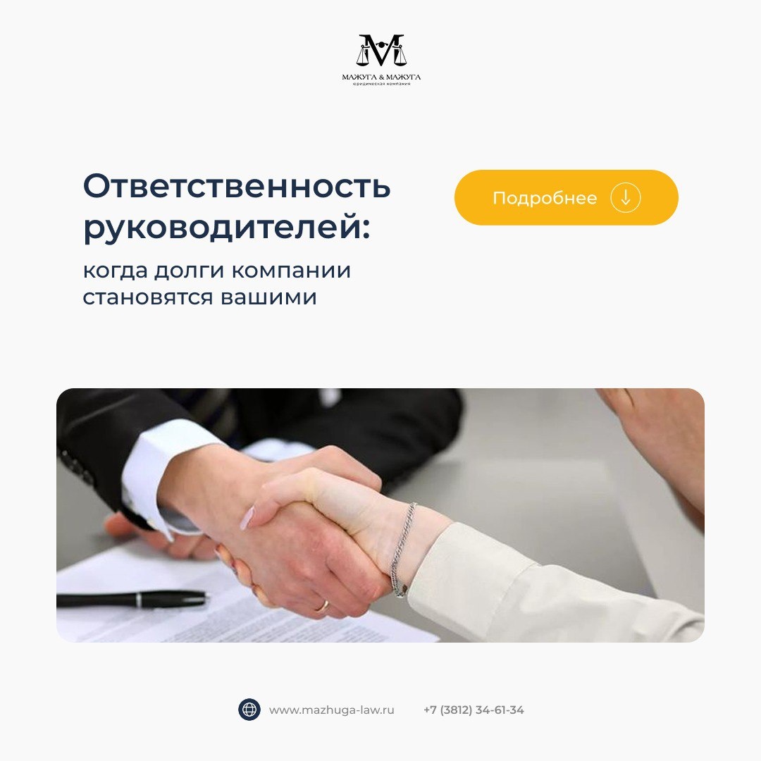 Ответственность руководителей: когда долги компании становятся вашими 💼 «Чем рискует директор?»: 4 случая, когда платить придётся из своего кармана 1️⃣ Неуплата налогов: Если ФНС докажет умысел (например, сокрытие доходов через офшоры) — субсидиарка по всем недоимкам. 2️⃣ Зарплатные долги: Личная ответственность наступает после 2 месяцев просрочки (ранее — 3). 3️⃣ Незаконное банкротство: Вывод активов, фиктивные сделки — даже после ликвидации компании долги «вернутся». 4️⃣ Поручительство: Если вы лично гарантировали кредит компании — взыскание на вашу квартиру/счёт неизбежно. 🔐 Как защититься: — Страхование ответственности директора, должностного лица и топ менеджера с максимальным покрытием всех рисков! — Регулярный аудит: ежеквартальная проверка снижает риски. 📞 Проверим ваши риски и предложим стратегию защиты! Звоните: +7 (995) 127-83-12 Или пишите @aumazhuga