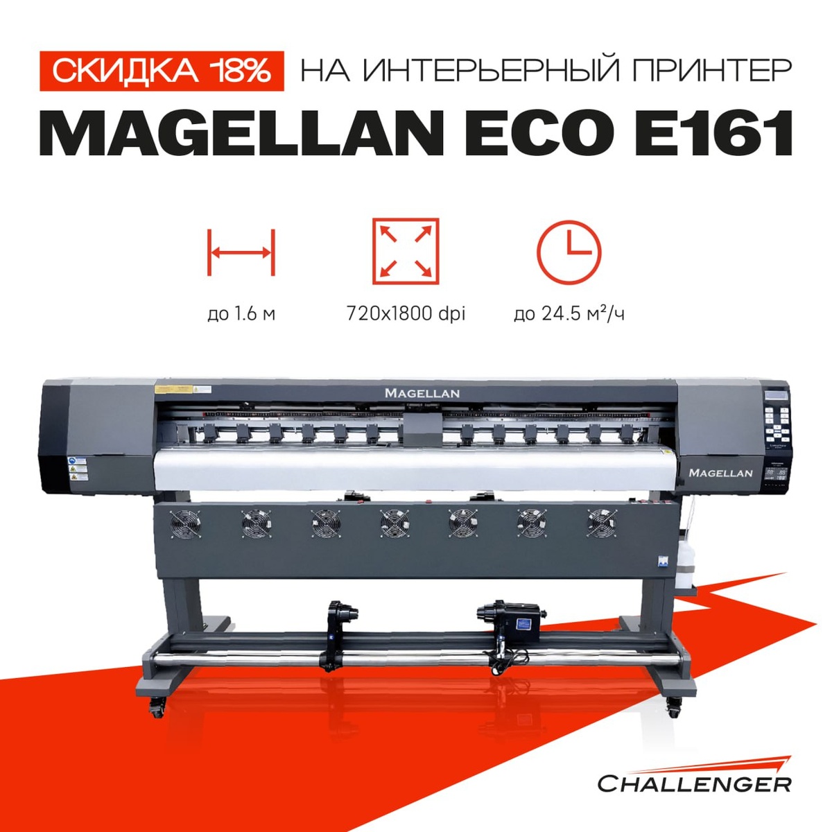 🚀 -18% на интерьерный принтер 1,6 м Принтер Magellan Eco Е16 стал лидером продаж 2024 года в Challenger и получил звание "Товар года". А теперь у нас для вас отличная новость — скидка 18% на данную модель только для подписчиков нашего Телеграм-канала! 670 000 ₽ ➡️ 550 000 ₽ Технологии Magellan Eco Е16 для безупречного отпечатка: → Печатающая голова Epson i3200 – высочайшая детализация с разрешением 720×1800 dpi и функцией переменной капли → Сочетание вентиляторного обдува и ИК-сушки для мгновенного закрепления чернил → Трехзонный подогрев стола – идеальные условия печати на любых материалах → Антикраш-система – защита от повреждений и сбоев → Автоподмотка материала – удобство и экономия времени Увидеть данный принтер в действии можно по ссылке 📢 Успейте приобрести Magellan Eco Е16 по выгодной цене до конца мая Напишите нам в @challenger_tg или на почту info@challeng.ru, чтобы получить выгодное предложение