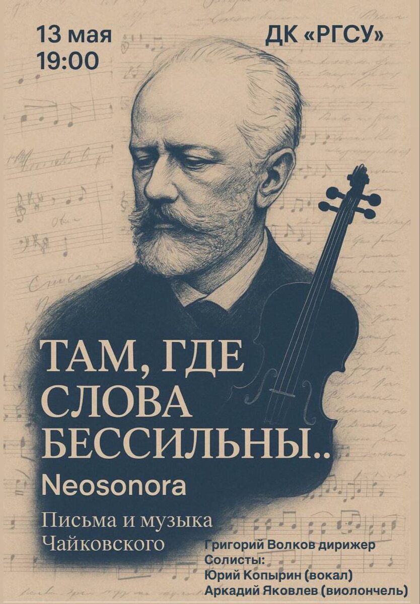 «Там, где слова бессильны…» 13 мая 2025 года в доме культуры РГСУ молодёжный оркестр NeoSonora представит литературно-музыкальную программу к 185-летию Петра Ильича Чайковского. https://www.classicalmusicnews.ru/anons/tam-gde-slova-bessilny/?utm_source=cmn_own&utm_medium=telegram