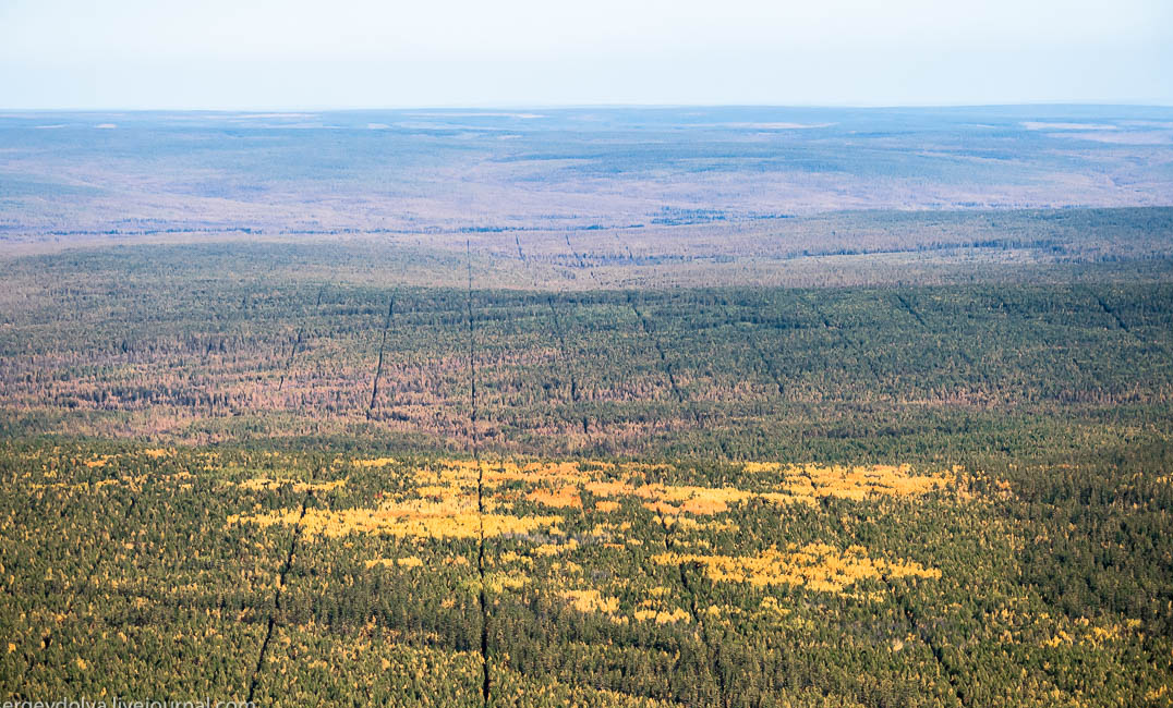 Всё началось с репортажа Сергея Доли «Осенние краски якутской тайги с вертолёта». Его фотографии, снятые с высоты, поразили не только красотой золотых лесов, но и странными геометрическими узорами. Прямые линии, пересекающие тайгу, выглядят как сетка, нанесённая на карту. Они тянутся на десятки километров, игнорируя холмы, болота и реки. Некоторые линии идут с севера на юг, другие — под углом 45 градусов, образуя узор, похожий на звезду Давида или триангуляционную сеть, которую используют геодезисты.