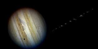 Представьте планету, чья масса в 318 раз больше земной, а гравитация настолько мощная, что разрывает кометы на части. Это не фантастика — это Юпитер, гигант, который в 1994 году пережил столкновение, изменившее наше понимание космических катастроф. Когда комета встретила гиганта Всё началось 24 марта 1993 года. Астрономы Кэролин и Юджин Шумейкеры вместе с Дэвидом Леви обнаружили комету, напоминавшую гирлянду из 21 фрагмента. Позже выяснилось: два года назад, в июле 1992-го, Юпитер разорвал её приливными силами во время сближения. Комета, названная Шумейкеров-Леви 9 (SL9), мчалась к планете со скоростью 60 км/с— это как пересечь расстояние от Земли до Луны за два часа. Огненное шоу длиной в неделю С 16 по 22 июля 1994 года обломки один за другим врезались в южное полушарие Юпитера. Самый крупный фрагмент (диаметром около 2 км — как две горы, сложенные вместе) вызвал вспышку с температурой 24 000°C — в пять раз горячее поверхности Солнца! Удар поднял из глубин атмосферы серу и аммиак