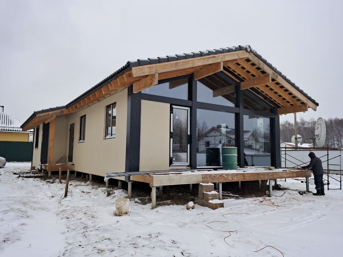 Благодаря стоечно-балочной конструкции, которая не даёт усадки, можно сразу же устанавливать безрамное панорамное остекление, заполняя до ¾ поверхности стен. Для остекления наших домов мы используем двухкамерные мультифункциональные стеклопакеты. Это инновационный продукт, объединяющий последние достижения в области стеклообработки. Преимущества: -Высокая теплоизоляция благодаря дистанционной рамке с низкой теплопроводностью. Она предотвращает промерзание и появление конденсата. -Камеры стеклопакета заполнены аргоном — инертным газом, который существенно улучшает теплоизоляцию и замедляет процесс охлаждения. -Внешнее стекло покрыто специальным многослойным покрытием с содержанием серебра, нанесённого магнетронным способом. Оно эффективно защищает от перегрева и ультрафиолетовых лучей, сохраняя при этом максимальную светопропускаемость.