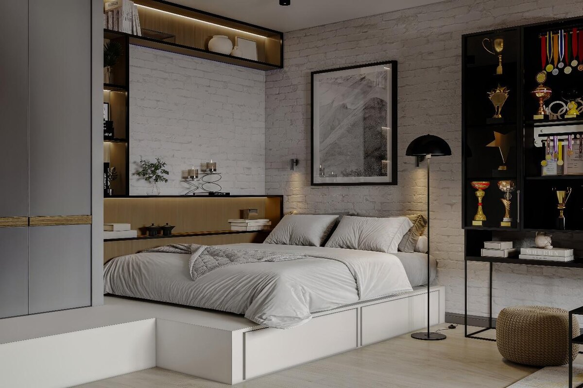 В современном дизайне много внимания уделяется созданию полноценной зоны спальни, с комфортной кроватью. Если вам повезло стать обладателем «евродвушки», то хотя бы небольшая изолированная спальня вам обеспечена, а если нет? Есть два популярных решения, одно бюджетное, второе дороже, но комфортнее по ряду параметров.