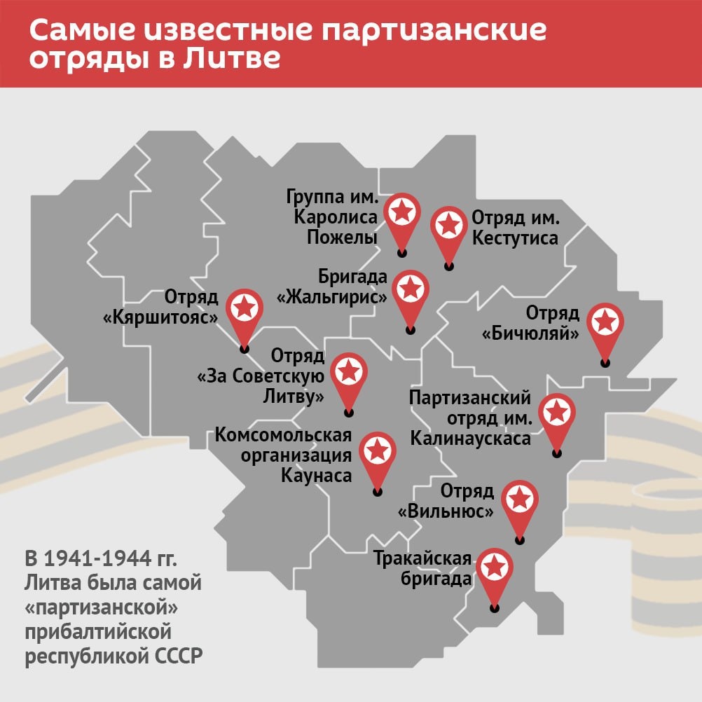 Четыре года, с 1941-го по 1944-й, Литва была самой "партизанской" среди балтийских республик СССР. Более 90 отрядов и групп литовских советских партизан участвовали в освобождении Литвы от немецких войск. Семь литовцев были удостоены звания Героя Советского Союза. Sputnik Литва теперь в Telegram! Подписывайтесь на самые быстрые, яркие и подробные новости о Литве, Балтии и не только.