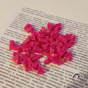 Предлагаемая вашему вниманию заметка – вариация описанного ранее способа, но сопряжённая с приёмом по утилизации различных остатков парафина (свечной массы). 1. Нарезаем на кусочки окрашенный свечной материал (в данном случае я использовал покупные мини-свечки). 2. На дно формы (здесь – пластиковый стаканчик из-под сметаны) насыпаем немного, чтобы закрыть дно, кусочки нарезанного материала. Также необходимо продеть и закрепить в форме фитиль. 3. В стаканчик-форму ставим небольшой предварительно подготовленный полый бумажный рулончик (он обопрётся на кусочки цветного парафина и не будет касаться дна формы), не забыв пропустить фитиль через него. В зазор между рулончиком и стенками стаканчика насыпаем остальной измельчённый цветной материал, внутрь же рулончика можно поместить как кусочки неокрашенного парафина, так и различные отходы (фрагменты огарков и т. п.). 4. Легонько постукивая стаканчик об стол, осторожно извлекаем бумажный рулончик, чтобы ближние к стенкам формы парафиновые фра
