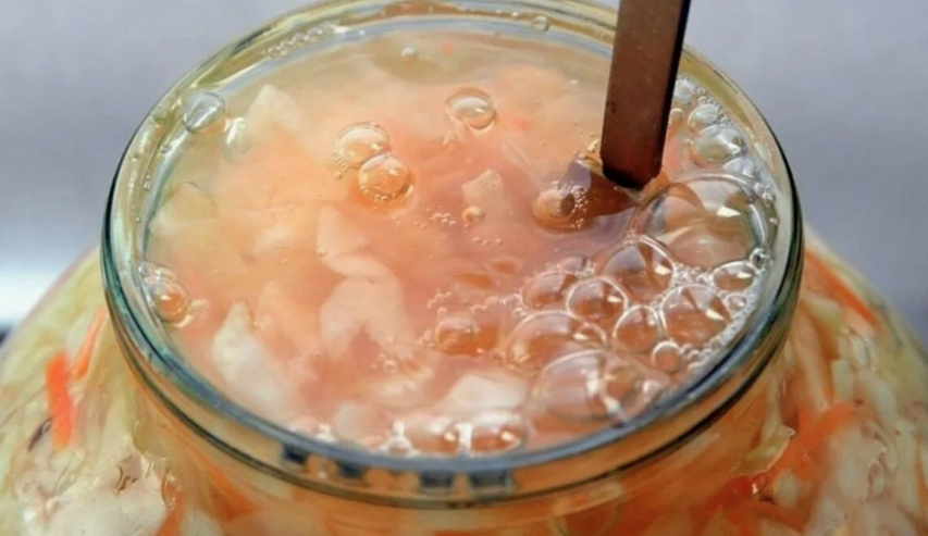 Что делать, если рассол стал густым, засопливел. В первые дни бактерии, расщепляя капустные или овощные сахара в том числе производят побочные продукты, например декстран и глицерин. Этот процесс может сделать рассол густым или даже скользким. Можно сказать, что это естественная часть процесса брожения, особенно в первую неделю. Далее густота рассола должна прийти в норму, поскольку полезные молочнокислые бактерии возьмут верх. Но если рассол остается очень слизистым, имеет неприятный запах или покрывается плесенью, попробуйте начать заново. Иногда скользкий или чрезмерно густой рассол может указывать на такие проблемы, как недостаток соли, высокие температуры или воздействие кислорода. Для начала стоит продолжить ферментацию. Иногда густой или «липкий» рассол является временным явлением и рассосется по мере ферментации. Полезные бактерии естественным образом устранят густую консистенцию. Также можем добавить небольшое количество свежего рассола, используя ту же концентрацию соли, ч