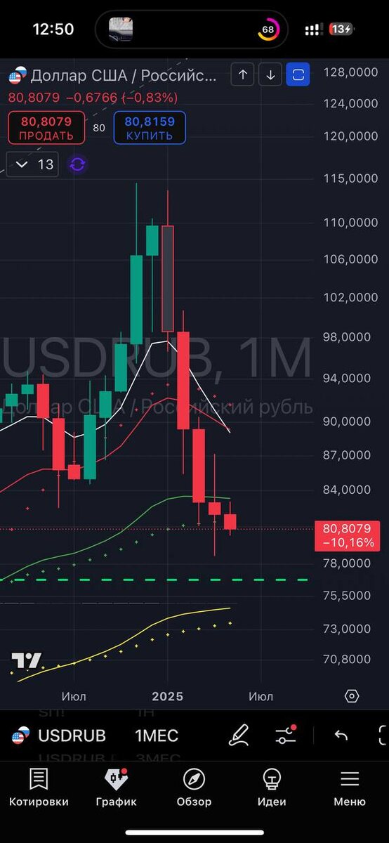 В ответ на пост #доллар #юань Ничего нового. Продолжается полноценный нисходящий тренд. Ориентир по юаню - точка притяжения 10.8. По доллару 74-76. По фьючерсу 76-78. Это 100% будет не точно Первый вход (и то, на отскок) буду рассматривать только вблизи этих значений. Не дойдет? Значит не буду рассматривать. Глобально же считаю, что есть все предпосылки увидеть бакс по 6Х.