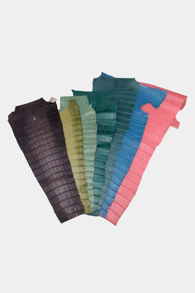 Безумно красивая расцветка хвостов крокодила и аллигатора 🤪 Насыщенные зелёные оттенки и ярко голубой — для самых смелых дизайнов и не