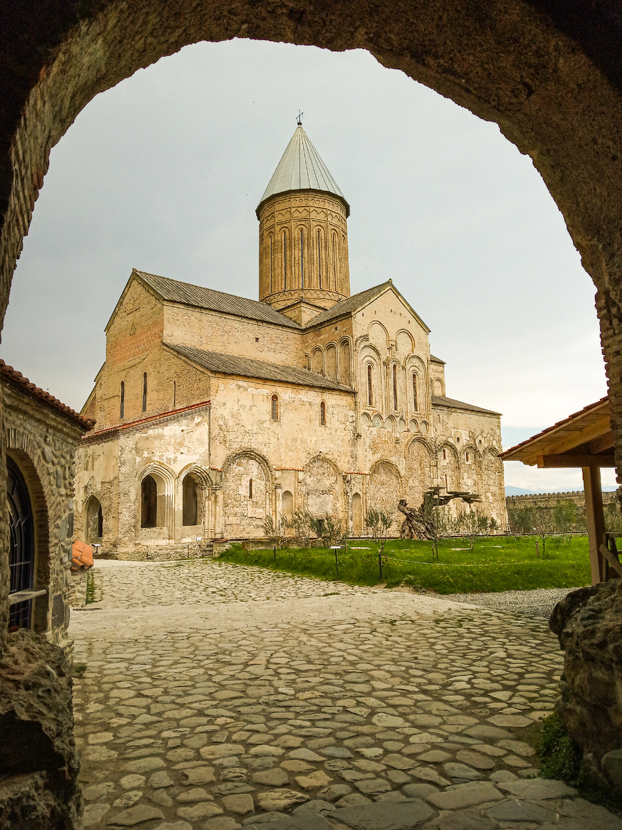 В самом сердце живописной Алазанской долины в Грузии, словно маяк духовности и величия, возвышается монастырь Алаверди. Дорога к Алаверди, петляющая среди бескрайних виноградников, утопающих в зелени, открывает потрясающие виды на Кавказские горы, чьи заснеженные вершины величественно возвышаются над долиной. Воздух здесь пропитан ароматом цветов, трав и свежестью горного ветра, создавая атмосферу умиротворения и благодати. История Алаверди уходит корнями в VI век, когда ассирийский монах Иосиф Алавердский основал здесь небольшую обитель. Именно он принес в Кахетию христианство и положил начало строительству храма, который впоследствии станет одним из самых значимых религиозных центров Грузии. На протяжении веков Алаверди играл важную роль в политической и культурной жизни страны, являясь центром просвещения, искусства и виноделия. Главная жемчужина монастырского комплекса – величественный собор Святого Георгия, возведенный в XI веке. Этот грандиозный храм, поражающий своими размерам