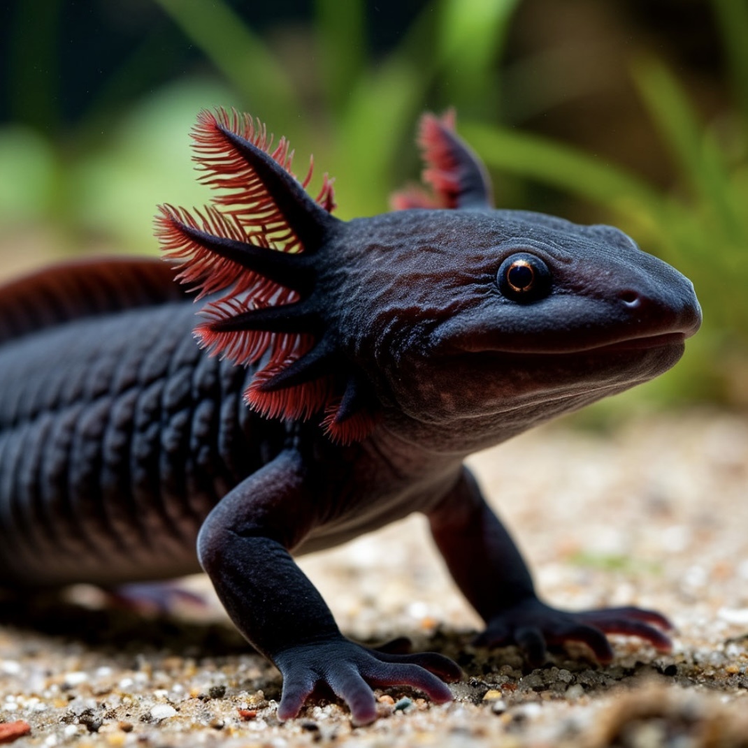 Аксолотль (Ambystoma mexicanum) — это вид хвостатых амфибий, который обитает исключительно в озёрах, таких как озеро Сочими́лько, расположенное в Мексике. Внешне аксолотль напоминает смесь саламандры и дракона, с пушистыми жабрами по бокам головы, что придаёт ему экзотический и даже немного комичный вид. Его название происходит от ацтекского слова «axolotl», что в переводе означает «водяной человек» или «человек-ящерица». Возможно, это связано с тем, что аксолотль обладает уникальной способностью сохранять личиночную стадию в течение всей жизни.