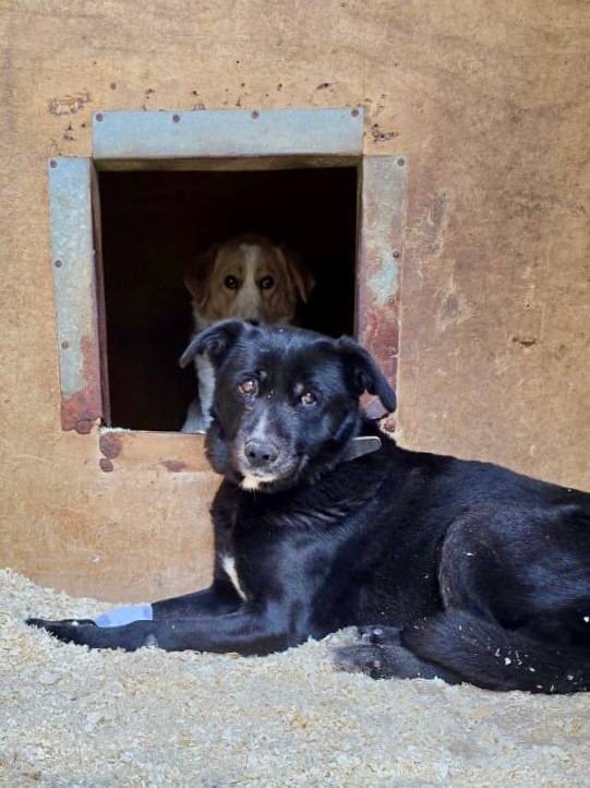 А еще с этой девочкой сидит новенький черный мальчишка. Знает базовые команды, дает лапу и ходит на поводке.