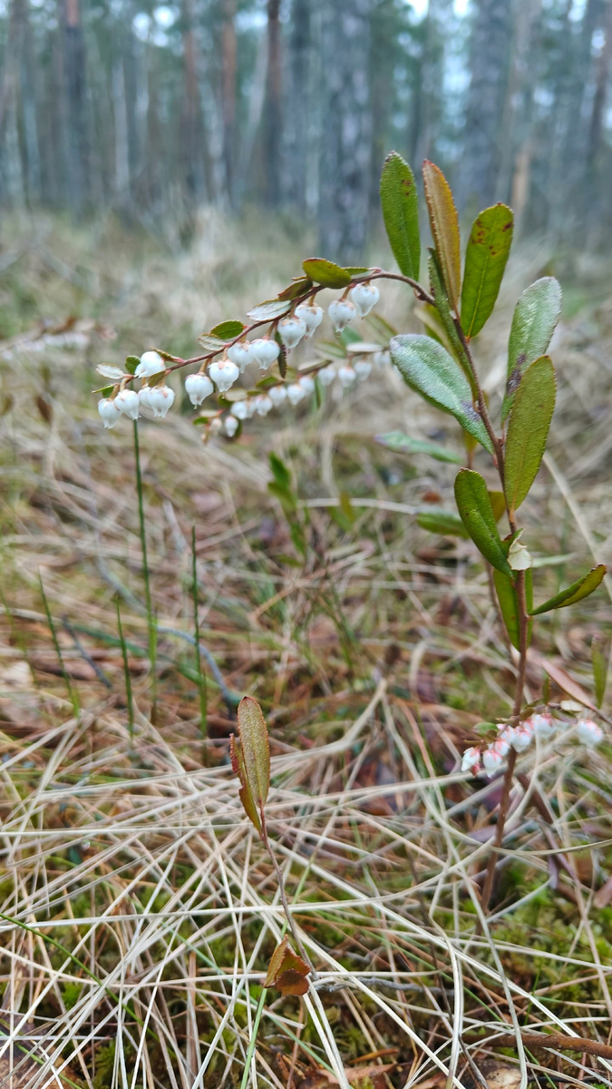 Это вечнозеленый кустарничек из семейства вересковых с белыми колокольчатыми цветами. Цветки собраны в соцветие, и расположены с одной стороны оси. Такой вид соцветия ботаники называют "однобокой кистью".