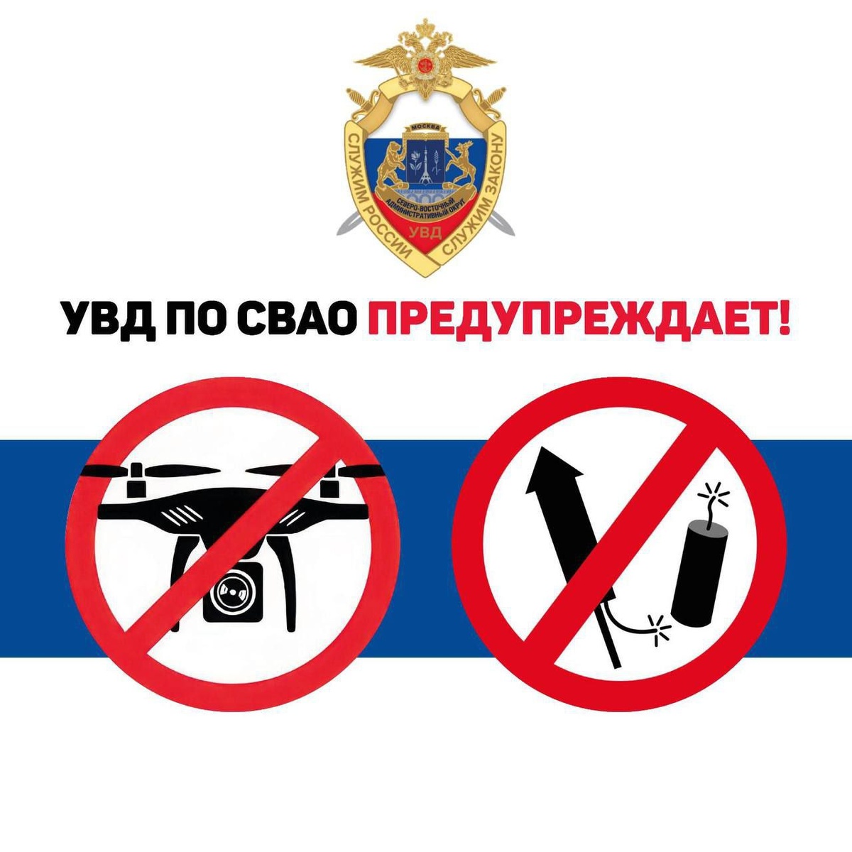 УВД по СВАО предупреждает граждан о запрете запусков БПЛА и использования пиротехнических изделий