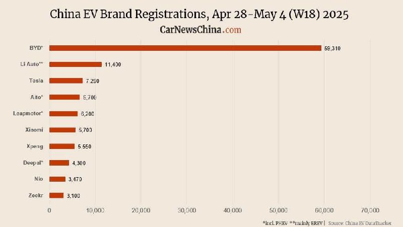 π Nio 3500, Xpeng 5500, Tesla 7300, Byd 59 310