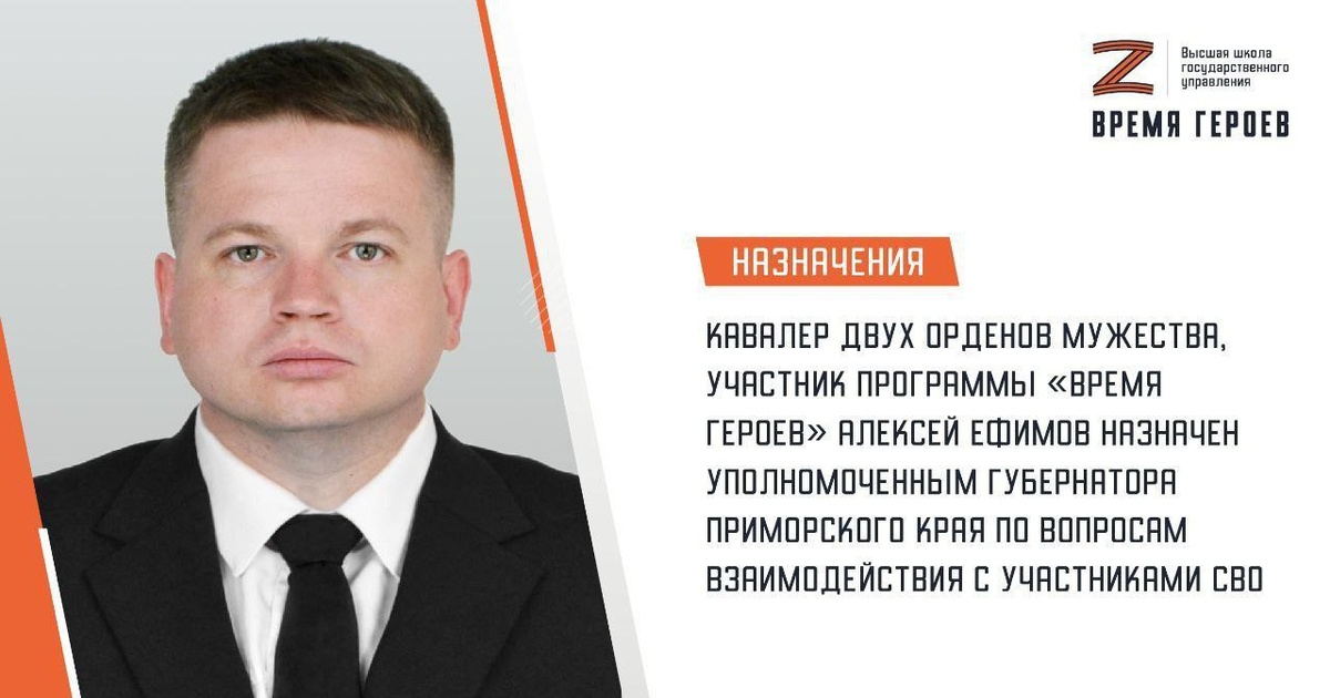 "Время героев": Алексей Ефимов, кавалер двух орденов Мужества, назначен на должность уполномоченного губернатора Приморского края по