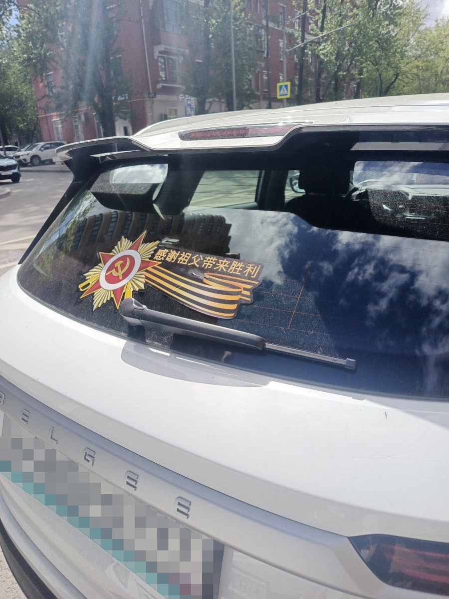 ⭐️⭐️⭐️⭐️⭐️ В Москве в честь 80-летия Великой Победы на китайских машинах появились наклейки с надписью "Спасибо деду за Победу!"... на китайском! 👍