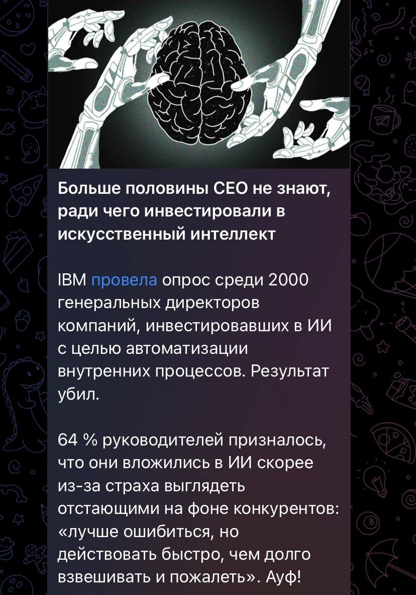 Соглашусь ИИ помогает прям очень точечно , но все носятся с ним как с чудом. Мы его не используем вообще - только как лопаты продаем :) Для широкой аудитории мсб от него польза только в ии помощниках , генерации контента и анализа звонков