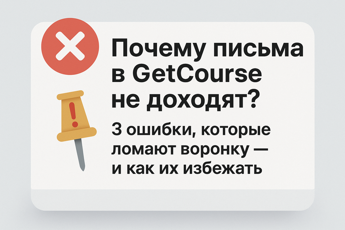 3 ошибки, которые ломают воронку — и как их избежать Выстроена автоворонка, настроены письма, собран вебинар — а люди не доходят. Письма «теряются», открываемость падает, цепочка не срабатывает. Знакомо? Как специалист, который более 5 лет работает с GetCourse, я часто вижу, что технически воронка есть — но результат её сильно «проседает». Чаще всего причина — в одних и тех же ошибках. Ниже — три самые частые и что с ними делать. На платформе GetCourse письма не отправляются сами по себе — для этого нужен чёткий запуск. Часто вижу: письмо есть, но не задан сегмент или не подключён блок автоматизации. В итоге оно просто не уходит. Что делать: