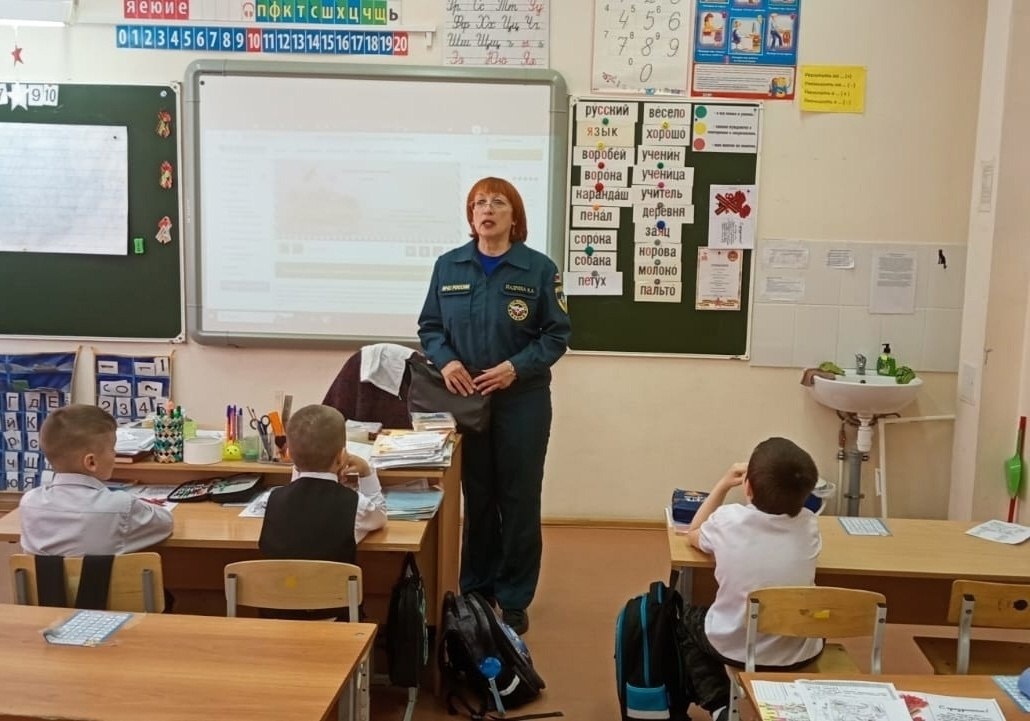📚 В школе № 1 г. Красноуральска прошел Всероссийский открытый урок культуры безопасности, посвященный Году защитника Отечества, празднованию 80-й годовщины Победы в Великой Отечественной войне 1941-1945 годов и Дню пожарной охраны. 👫 В ходе открытого урока представитель пожарной охраны Елена Шадрина рассказала школьникам об основных правилах личной безопасности, о действиях в чрезвычайных ситуациях, напомнила о запрете пала травы в весенний пожароопасный период, а также номера телефонов вызова экстренных служб. Затем ребята почувствовали себя в роли спасенного- примерив спасательное устройство «Капюшон». В завершении ученики поблагодарили Елену Анатольевну за интересный и познавательный урок. Источник: 46 пожарно-спасательный отряд Источник