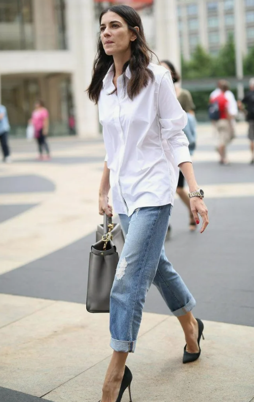 👚✨Привет, мои стильные! Это Елена, и сегодня поговорим о вещи, которая есть почти у каждой, но часто висит в шкафу «на всякий случай». Да-да, про ту самую белую (или светлую) базовую рубашку. Вроде бы классика, но как только её надеваешь — кажется, что сейчас либо на совещание, либо на школьную линейку. Сегодня я покажу, как сделать из рубашки стильный и свежий образ для любой ситуации! Она не просто одежда. Это чистый холст, на котором можно нарисовать любой стиль. Хотите женственно? Легко. Нужно удобно и немного дерзко? Пожалуйста. Всё зависит от того, как её обыграть. И самое приятное — такие образы собираются за минуты. Классика, но не банально! Самое главное — выбрать правильные джинсы. Отлично подойдут прямые или слегка расклёшенные модели. Заправьте рубашку полностью или сделайте «французскую заправку» — только переднюю часть заправить в джинсы, а спинку оставить свободной. Это сразу придаёт образу расслабленность и делает фигуру стройнее. Добавьте кожаный ремень, кеды или лофе