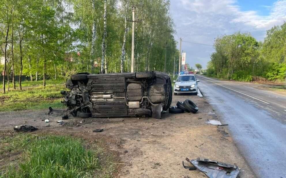 Пьяный водитель иномарки врезался в столб и перевернулся под Воронежем