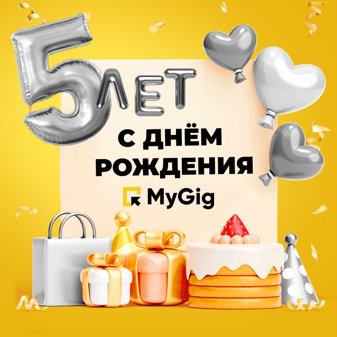 Сегодня 🔠🔠🔠🔠🔠 ➖ 5️⃣ лет! Отмечаем с размахом и запускаем розыгрыш-флешмоб по городам РФ Друзья, гигеры и команда Майгиг, поздравляем всех с первым юбилеем нашего любимого сервиса! Мы открыли двери в мир работы и подработок для множества людей, помогая им получать достойную оплату за труд. А вы поддерживаете нас как в трудные, так и в радостные моменты, позволяя становиться лучше и совместно развиваться ❤️ Прямо сейчас мы запускаем яркий флешмоб с розыгрышем ПЯТИ В КВАДРАТЕ фирменных футболок — давайте устроим перекличку по городам нашего присутствия! Для этого с 7 мая по 7 июня в комментариях под данным постом: 1️⃣ Выложите небольшое селфи-поздравление с Днём рождения платформы одним из способов ниже: — запишите кружок с поздравлением — или отправьте ваше фото в праздничном образе, или короткое видео-поздравление не более 15 сек. 2️⃣ Укажите имя и город 3️⃣ Добавьте хештеги #5летMyGig, #ПоздравляюMyGig или #МирТрудМайгиг ❗️ Чтобы стать участником, обязательно выполните миним