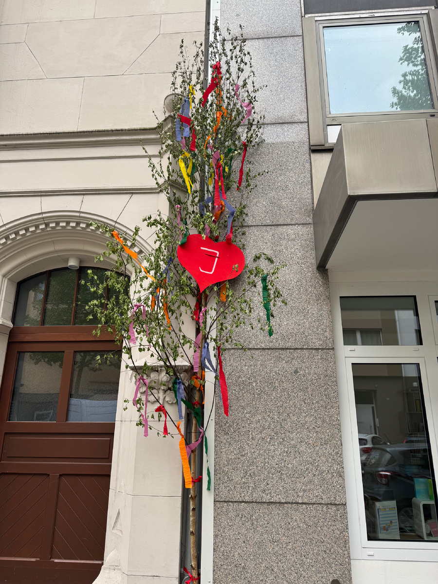 Каждый год в конце апреля я начинаю внимательно смотреть по сторонам. Нет, не потому что у меня аллергия на цветение или внезапное обострение романтизма. Просто в это время на улицах Кёльна, Бонна и Дюссельдорфа появляется нечто странное: стройные берёзки с сердечками, ленточками и праздничным антуражем, торчащие... прямо из асфальта под окнами жилых домов. Если бы я не знала, что это традиция, я бы решила, что это флористы сошли с ума. Но нет — это немцы. И это майские деревья. В ночь на 1 мая у немецкой молодёжи включается режим тайного агента с оттенком Купидона. Парни (а теперь и девушки, ибо гендерное равенство наступает и в лесу) выбирают берёзу, украшают её всем, что нашлось в "креативной коробке", и устанавливают под окнами своей симпатии. Всё строго инкогнито: чтобы утром объект обожания проснулся, выглянул в окно и... ахнул. Традиция, между прочим, не новая. Первый документальный свидетель — монах XIII века, у которого явно было много свободного времени и любопытства к сел