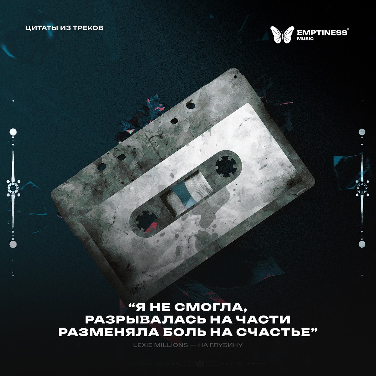 Цитата из трека «На глубину» от LEXIE MILLIONS «Я не смогла, разрывалась на части Разменяла боль на счастье» Emptiness Music — в пустоте скрывается успех.
