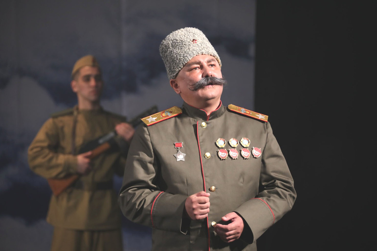 В Сибае состоялась премьера спектакля «КрылАТый генерал». В год 80-летия Победы в Великой Отечественной войне главный режиссер Сибайского башдрамтеатра имени Арслана Мубарякова Денис Нургалин поставил спектакль по пьесе Хамита Иргалина, сообщает ИА "Башинформ". В военной драме отражается история жизни и боевого пути генерал-майора, Героя Советского Союза Тагира Кусимова. Содержание драмы наполнено событиями, переворачивающими жизнь главного героя пьесы. Артисты передали чувства и эмоции своих героев, образы получились узнаваемыми и понятными каждому, отметили первые зрители спектакля. Славный сын башкирского народа Тагир Кусимов, который в годы войны был командиром первого полка 112-й Башкирской кавалерийской дивизии, предстал перед зрителями как яркая личность, сумевшая вырасти из простого деревенского пастуха в генерала. Роль Тагира Кусимова исполнил заслуженный артист России, народный артист Башкортостана Риф Сайфуллин, роль супруги Сайды — народная артистка РБ Айгуль Хакимова. Обра