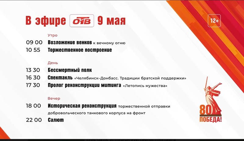 9 мая телеканал ОТВ совместно с ГТРК «Южный Урал» проведут особую праздничную трансляцию