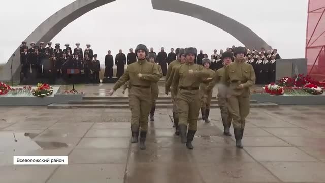 На мемориале «Разорванное кольцо» собралось порядка 500 человек. Акция «Эстафета Вечного огня на Дороге жизни городов воинской славы» началась с торжественно-памятного мероприятия. На мемориале «Разорванное кольцо» собралось порядка 500 человек. Это представители 32 городов воинской славы России, делегации из зарубежных стран, члены молодежного актива и другие почетные гости. Место для старта автопробега выбрано символичное. Перед собравшимися выступили творческие коллективы и заслуженный артист России Борис Галкин. Исполнение патриотических стихотворений и песен сопровождалось показом архивного видео. В честь старта эстафеты прозвучал гимн Российской Федерации, а курсанты вышли с лампадами, которые будут установлены у каждого километрового столба Дороги жизни. Официальная часть мероприятия завершилось минутой молчания и возложением цветов.