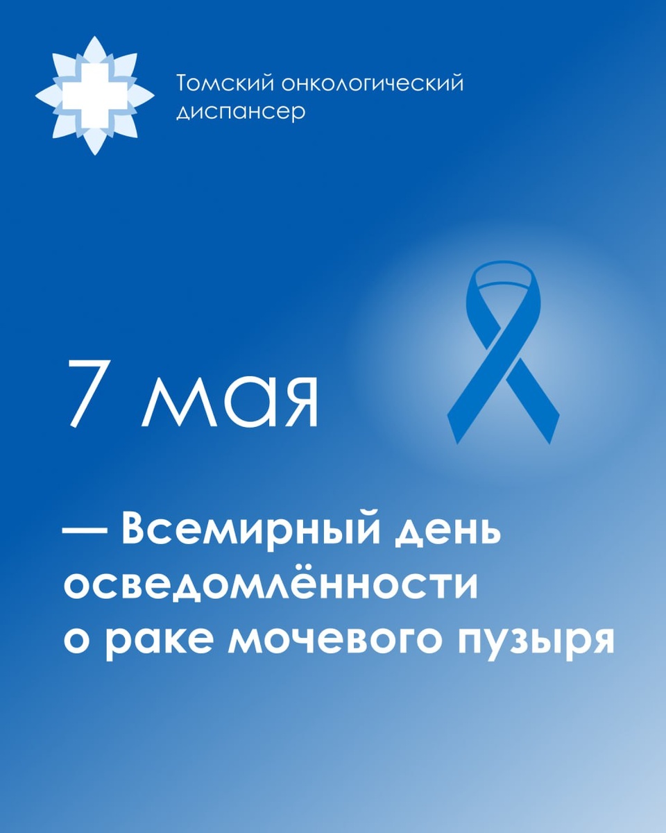 7 мая — Всемирный день осведомлённости о раке мочевого пузыря. Рак мочевого пузыря — одно из наиболее распространённых онкологических заболеваний мочевыделительной системы. Ежегодно в мире диагностируются сотни тысяч новых случаев, и раннее выявление играет решающую роль. Что важно знать: — На ранних стадиях заболевание может протекать бессимптомно — Наиболее частый симптом — кровь в моче (гематурия) — В группе риска — курящие, лица, контактирующие с химическими веществами, мужчины старше 55 лет Профилактика включает: — Отказ от курения — Контроль и лечение хронических воспалений мочевого пузыря — Ограничение контакта с вредными химикатами — Регулярные медицинские осмотры при наличии факторов риска Чем раньше заболевание обнаружено, тем больше возможностей для эффективного лечения. При наличии тревожных симптомов — не откладывайте визит к врачу. Берегите себя и своих близких!