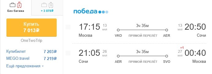 ✈️Москва - Сочи, туда и обратно за 7000 рублей