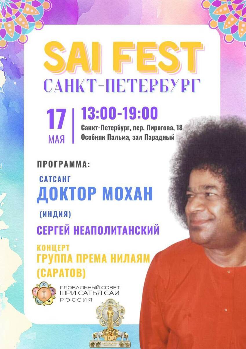САИ ФЕСТ в Санкт-Петербурге уже совсем скоро 🎊 Ждем встречи с вами в городе на Неве! 🗓️ 17 мая 🕛 13:00-19:00 ✨Погружение в Божественные вибрации Саи 🎉 Открывает Саи Фест Сергей Михайлович Неаполитанский 💫 Специальный гость Саи Феста - доктор Мохан (давний преданный Сатья Саи, автор книг о Саи) 🎸ПРЕМА НИЛАЯМ с музыкальным подношением любви и преданности 🪷 Вегетарианский ПРАСАД 🚩 Санкт Петербург, Переулок Пирогова, дом 18, Особняк Пальма, Парадный зал, второй этаж Вход свободный Есть форма регистрации, чтобы рассчитать количество участников, подготовить площадку и угостить каждого вегетарианским прасадом. https://forms.gle/iD6XL7He6YFRg4hDA Реклама ИП Астапчик В.В., ИНН 644921158738, erid: 2SDnjdcp3js