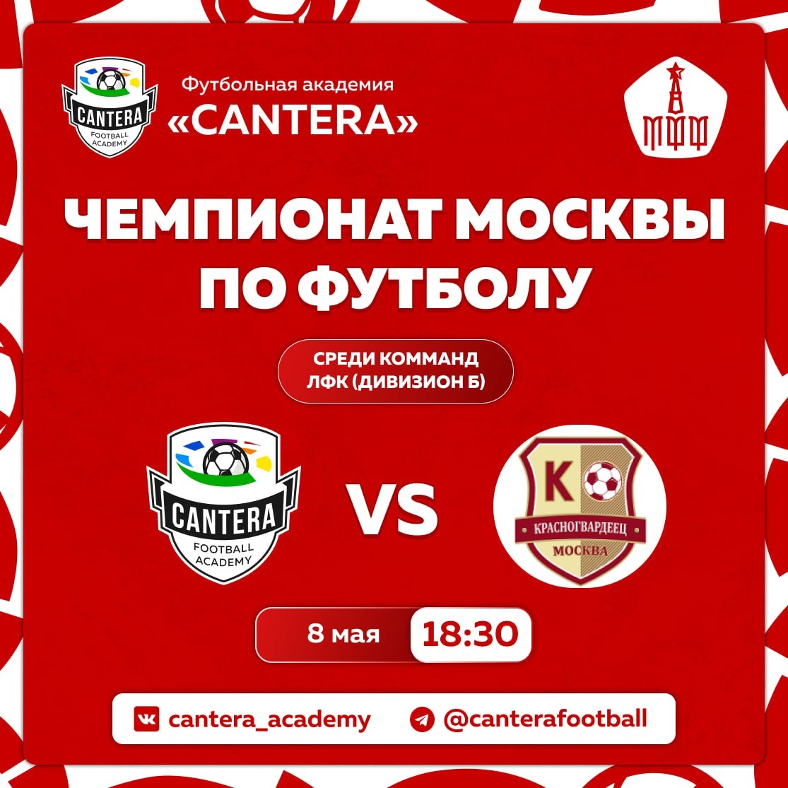 Уже завтра ❤️🔥 8 мая состоится матч 4-го тура Чемпионата МФФ против команды «Красногвардеец». Игра пройдет на стадионе «Луч» в 18:30 ⚽️ Ранее команды встречались 20 сентября 2024 года в рамках 25-го тура МФФ. Тогда победу одержали FA «Cantera» со счётом 1:0 ⚡️ VAMOS CANTERA! 💛❤️