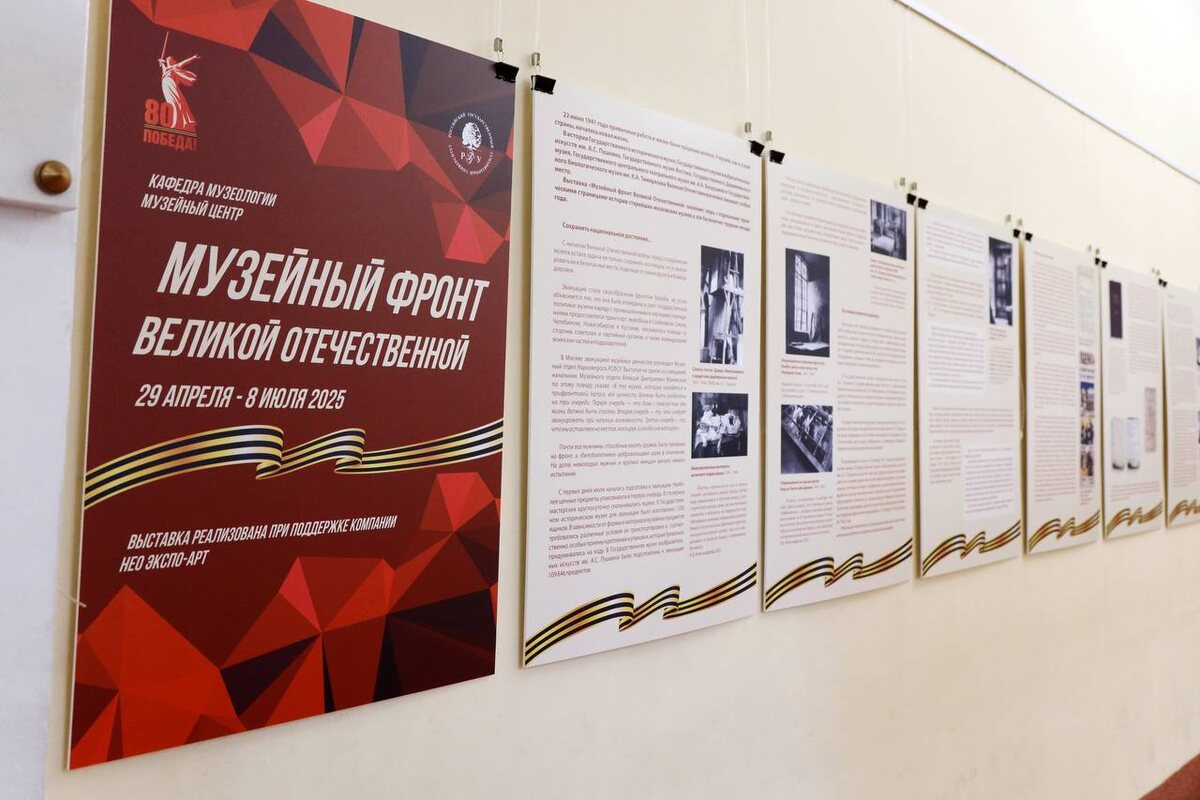 ✉️ Целая история на стенах РГГУ 🔥 «Музейный фронт Великой Отечественной» — выставка в холле у Центральной аудитории, которую точно стоит посетить! Выставка, разработанная Музейным центром РГГУ совместно с кафедрой музеологии факультета Истории искусства под руководством доцента Виктории Черненко, рассказывает о том, как сотрудники крупнейших московских музеев — Исторического, Пушкинского, музея Востока, Дарвиновского и других — спасали культурное наследие во время войны: эвакуировали коллекции, создавали выставки, вели просветительскую работу, укрепляли дух нации. Экспозиция основана на архивных материалах и даёт редкую возможность увидеть подвиг музейных работников как часть общей борьбы за Победу. 👥 Выставка создана при поддержке компании «Нео Экспо-арт». Художник выставки — Маргарита Нижегородцева. 🔗 Подробнее о новых выставках читайте на официальном сайте РГГУ. ⚪ Подписаться на РГГУ #РГГУ #МузейРГГУ #ВОВ #История #ВеликаяОтечественная #НаучныйПолк #НаучныйПолк2025 #Победа