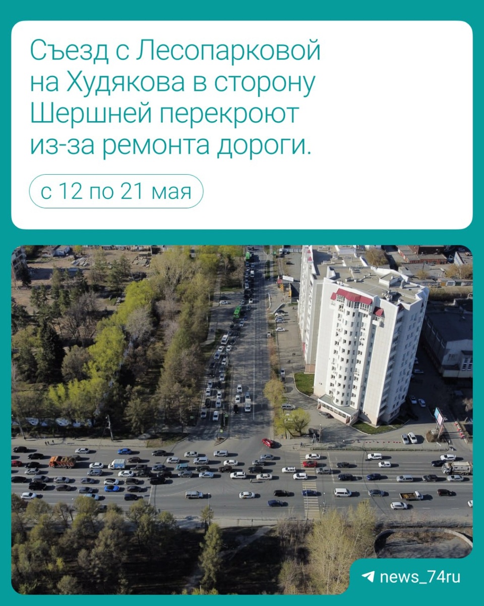 Съезд с Лесопарковой на Худякова в сторону Шершней будет закрыт полторы недели.