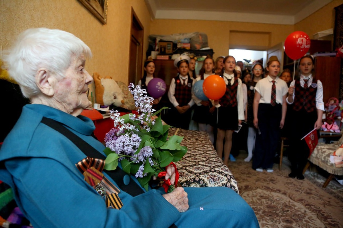 Севастопольские школьники поздравили с наступающим Днем Победы ветерана Тавифу Фрейдину
