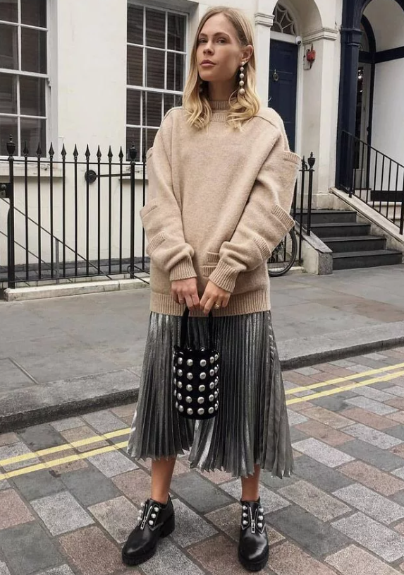 Плиссированная юбка и базовый свитшот: женственность вне сезона