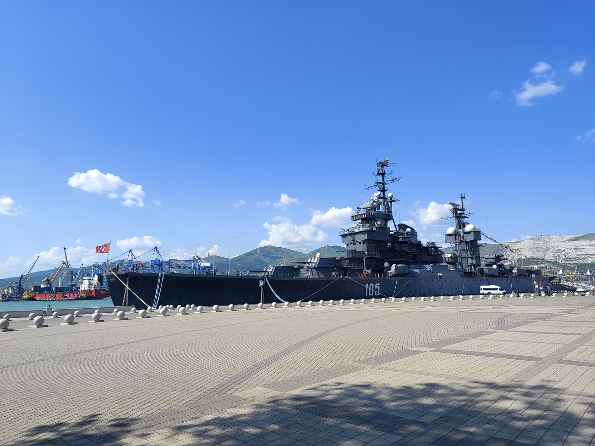 Новороссийск — город-герой с богатой историей, и одним из его символов по праву считается крейсер «Михаил Кутузов». Попасть на борт можно только с экскурсией, которая начинается, когда набирается группа из 10-12 человек. Мы были в Новороссийске в конце мая, в будний день, и туристов было немного. Подождав всего около 15 минут, мы отправились в путешествие по этому морскому гиганту. Экскурсия начинается на верхней палубе, где нас встречает опытный экскурсовод. Его голос звучит уверенно и проникновенно, когда он начинает рассказывать об истории крейсера, его участии в учениях и походах в Средиземное море и Атлантический океан. В этот момент понимаешь, что перед тобой не просто корабль, а символ мощи и славы Черноморского флота. «Михаил Кутузов» был заложен в 1951 году и с тех пор всегда стоял на страже морских рубежей, хотя в боевых действиях не участвовал. Этот крейсер — представитель проекта 68-бис, одного из самых успешных и массовых артиллерийских проектов Советского флота. Имя он