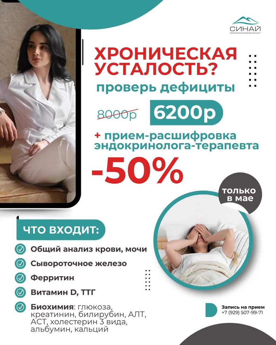 π₯ΠΡΠΎΠ²Π΅ΡΡΡΠ΅ ΠΎΡΠ³Π°Π½ΠΈΠ·ΠΌ Π½Π° Π΄Π΅ΡΠΈΡΠΈΡΡ ΠΏΠΎ Π²ΡΠ³ΠΎΠ΄Π½ΡΠΌ ΡΠ΅Π½Π°ΠΌ Π² ΠΌΠ°Π΅ ΠΈ ΡΠ·Π½Π°ΠΉΡΠ΅, ΡΡΠΎ Π½Π° ΡΠ°ΠΌΠΎΠΌ Π΄Π΅Π»Π΅ Π΄Π°Π΅Ρ ΡΠ±ΠΎΠΉπ₯ Π ΠΌΠ°Π΅ 2025 Π³ΠΎΠ΄Π° Π² ΠΊΠ»ΠΈΠ½ΠΈΠΊΠ΅ Β«Π‘ΠΈΠ½Π°ΠΉΒ» Π΄Π΅ΠΉΡΡΠ²ΡΠ΅Ρ ΡΠΏΠ΅ΡΠΈΠ°Π»ΡΠ½Π°Ρ Π°ΠΊΡΠΈΡ Π½Π° ΠΊΠΎΠΌΠΏΠ»Π΅ΠΊΡΠ½ΡΠ΅ ΠΎΠ±ΡΠ»Π΅Π΄ΠΎΠ²Π°Π½ΠΈΡ ΠΏΠΎ ΡΠ°ΠΌΡΠΌ ΡΠ°ΡΡΡΠΌ Π·Π°ΠΏΡΠΎΡΠ°ΠΌ: π¬ Π₯ΡΠΎΠ½ΠΈΡΠ΅ΡΠΊΠ°Ρ ΡΡΡΠ°Π»ΠΎΡΡΡ β ΠΊΠΎΠ³Π΄Π° ΡΠ½Π΅ΡΠ³ΠΈΠΈ Π½Π΅ Ρ