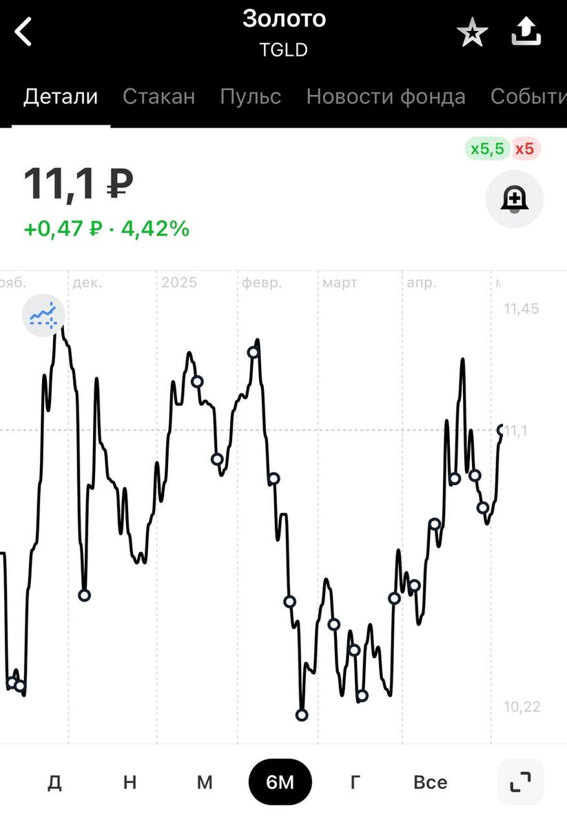 Продолжаю еженедельно докупать #фонд $TGLD на #ИИС , чтобы довести долю до планируемых 10