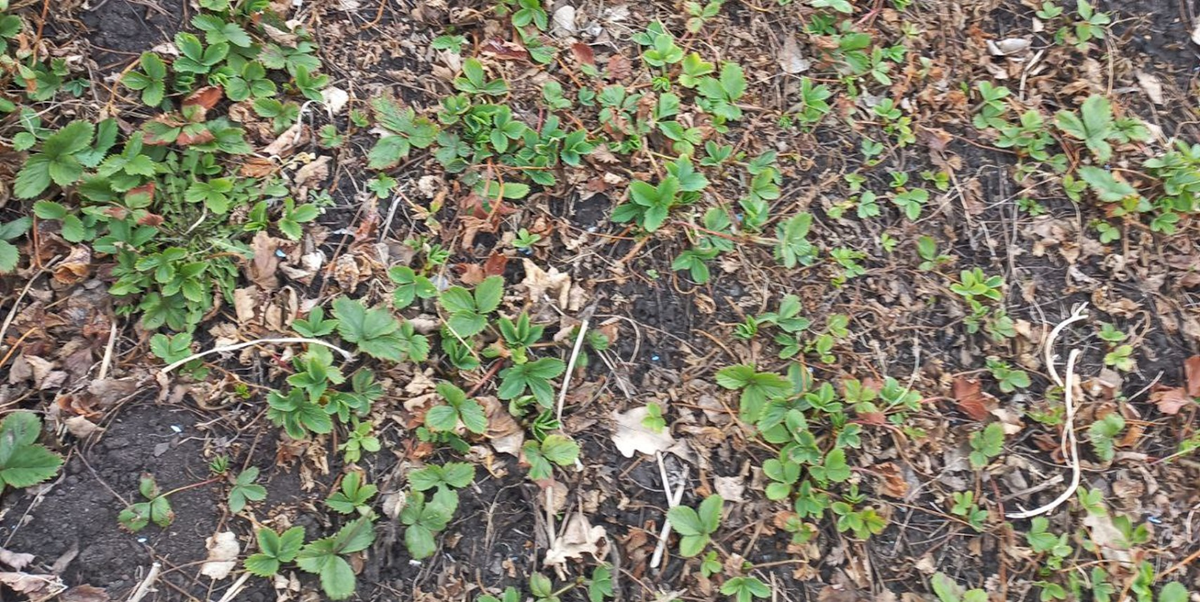 Первое, что нужно сделать на клубничных плантациях после зимы — очистить их от старой растительной мульчи и листьев, подмерзших и больных побегов, прошлогодних усов. Так вы направите питание к молодым частям растений и ускорите их рост. И обязательно уберите с грядок все сорняки, не оставляйте им шансов на размножение.