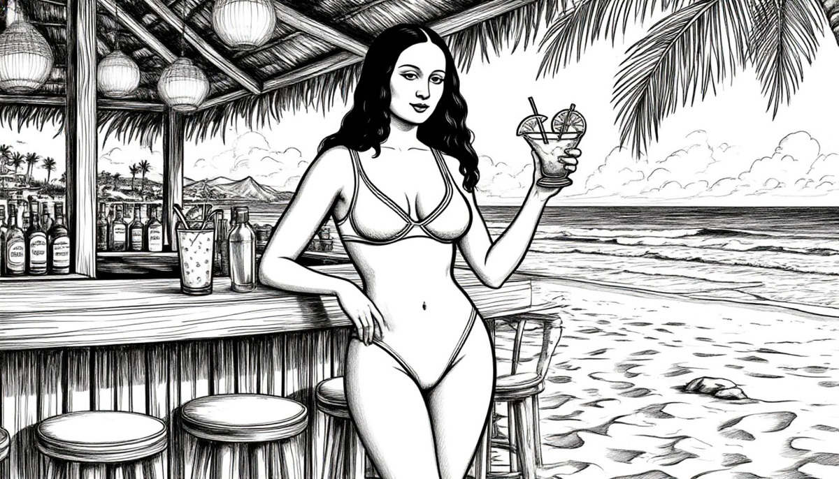 Современная Мона Лиза в отпуске - раскраска-антистресс (6 рисунков, бесплатно)