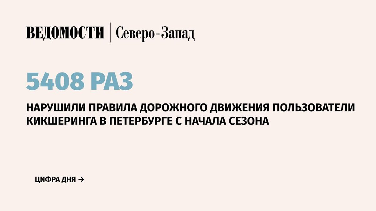 За два месяца с открытия сезона кикшеринга пользователи электросамокатов нарушили правила дорожного движения (ПДД) 5408 раз. Сотрудники Центра управления парковками выписали 2567 штрафов, сообщила пресс-служба городского комитета по транспорту. Самые распространенные нарушения: ⚪️4582 случая — проезд по пешеходному переходу без спешивания. ⚪️491 случай — езда вдвоем или втроем на одном электросамокате. ⚪️192 случая — использование электросамокатов несовершеннолетними. ⚪️137 случаев — нарушения на проезжей части и улично-дорожной сети. 📰 Подпишитесь на «Ведомости Северо-Запад»