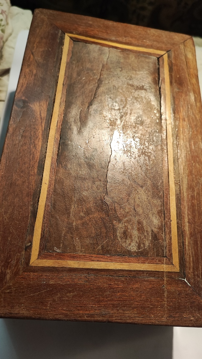 :0)) Из интернета: ларец, это такая шкатулка... :0) Из интернета: "... настоящая мода на светлое дерево, причём не только в России, но и во многих западноевропейских странах, возникла в результате наполеоновских войн и установленной 26 ноября 1806 года континентальной блокады, следствием которой явилось почти полное прекращение торговли экзотическими породами дерева" Эт о преамбула. А вот к сути статьи: Купил я как-то шкатулку...Вот эту: Вернулся домой, написал статью, мол, купил маркетри. А мне говорят, нет, это паркетри. Полез в интернет: "В то время как маркетри используется для создания картин на дереве, паркетри используется для создания узоров на дереве" Я-то понимаю, что у меня - картина. Практически "Коричневый прямоугольник" Малевича... Но спорить не стал. :0) Длина ларца - 23,5 см. А есть еще два, по 27 см... Ни про породы дерева, ни про время бытования - ничего не скажу :(((( 19 век, примерно... Купил... Похвастался знакомому... А тому понадобились латунные петли