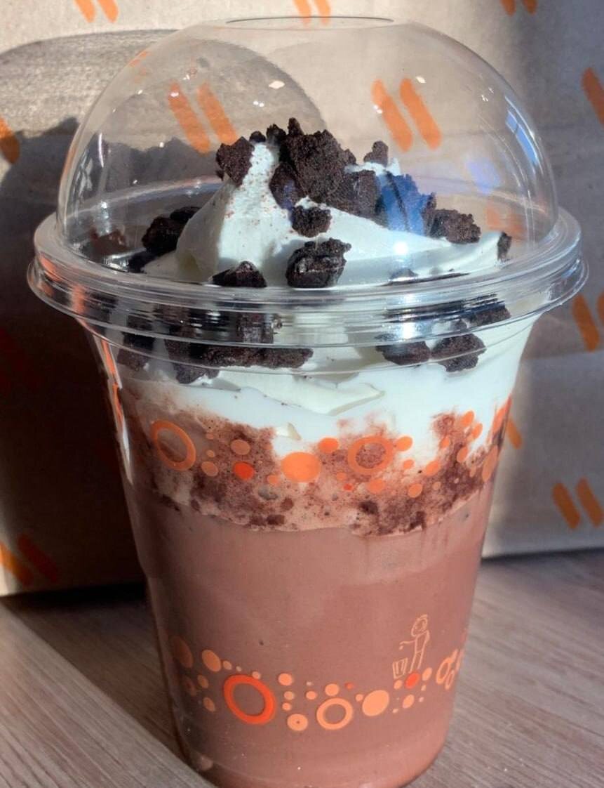 Опа, во «Вкусно — и точка» завезли айс-КАКАО. В холодный напиток входит апельсиновый сироп, взбитые сливки и шоколадную крошку.