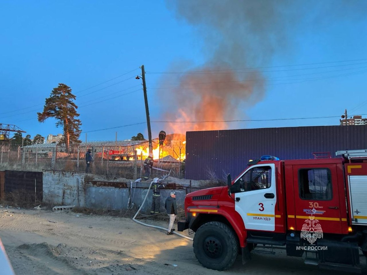 Сотрудники МЧС России ликвидировали загорание в Улан-Удэ Возгорание шпал, складированных на открытой территории военной части по улице Боевая, произошло вечером 7 мая. Создалась угроза перехода огня на соседние строения. Силами пожарной команды В/Ч 70149 и прибывших на место сотрудников МЧС России в количестве 6 человек и 2 единиц техники пожар был ликвидирован на площади 100 квадратных метров, пострадавших нет. Причина пожара устанавливается, на месте работает дознаватель МЧС России МЧС Республики Бурятия