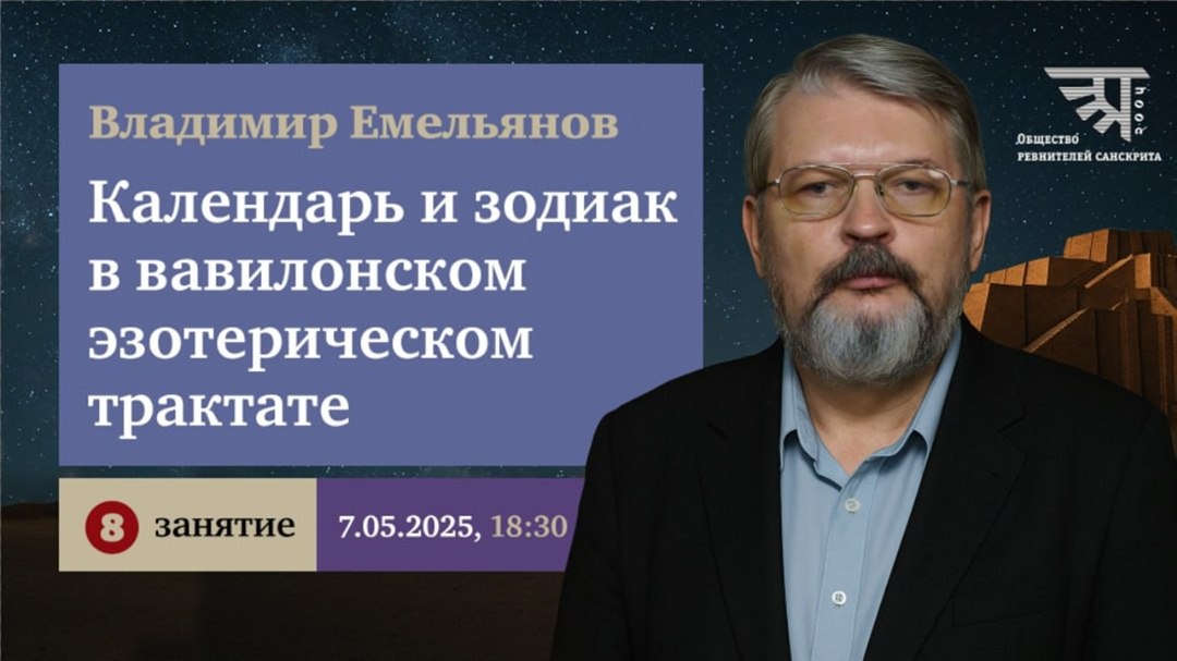 В рамках курса "Астрономия для астрологов", при содействии семинара по "Истории науки" Института санскрита Общества ревнителей санскрита, 7-го мая 2025 г. гостевую лекцию прочитает доктор философских наук, кандидат исторических наук, доцент, профессор Емельянов Владимир Владимирович.